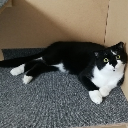 | 特徴(性格など) | 黒白、ぺたんこ耳。 シャイな男の子。 |