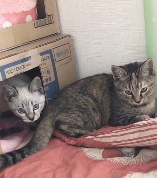 | 里親募集する理由 | 大雨の次の日車のエンジンルームに入って鳴いてました。 なんとか外に出そうと救助を試み無事脱出! はじめは母猫がそばにいるのかとリリースしましたが、 次の日から庭に現れるようになりお腹を空かせてそうなのでご飯をあげるようになりました。 交通量がけっこうある道路に面しているため、心配でしばらくしても母猫が現れないことから 保護して里親募集することにいたしました。 保護は姉妹2匹です。 |