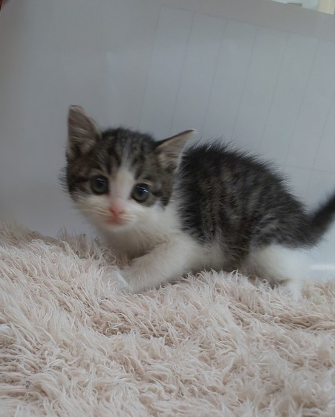 | 特徴(性格など) | 白キジ柄の女の子です。 元気いっぱいの食いしん坊でよく人になれています。 |