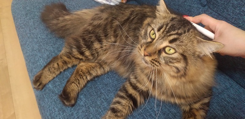 | 特徴(性格など) | サイベリアンの男の子です。 性格は甘えたチャンですぐによってきてくれます。 壁への爪とぎしない賢い子です。 |