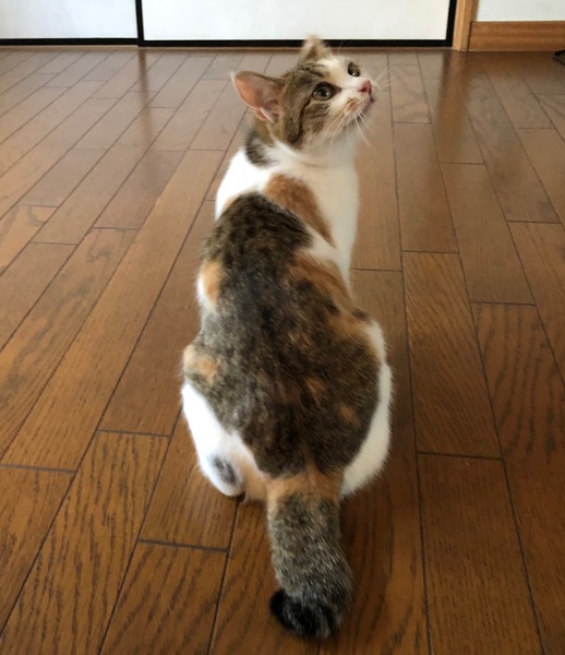 | 里親募集する理由 | 初夏のある日 生後2ヶ月ごろのミケちゃんを近所で見かけ、気にしてたところ 我が家駐車場に現れるようになりました。 最初は近づくと逃げていましたが 春ごろから駐車場に来るようになった茶白の男の子と一緒に ご飯をあげるうちに玄関に入ってくるようになり触れるようになりました。 外では怖い思いもして警戒していたのでしょう、安全な家の中ではスリスリゴロゴロと膝に乗りました。 強く噛んだり 手が出ることもなく 性格の良い愛らしい子です。 近隣は猫嫌いな家が多く 人馴れした猫が外で生きていくには厳しい環境です。 人が大好きな可愛いこの子は家猫として猫生を過ごしてほしい‥‥そう願い 避妊手術のため保護したのを機会に家に入れました。 一緒に暮らせれば良いのですが 我が家の猫たちは全員シニアで闘病中の子もおり 残念ながらどうしても「ミケちゃん」と暮らすことができません。 ミケちゃんのためのお部屋が用意できないため 今はケージで生活しています。 ケージから出たくてかまって欲しくて鳴きますが しばらくすると諦めます。 1日に数回 短時間ですがケージから出して遊んであげています。 1日も早くケージから解放させてあげたい。 愛情をたっぷりと注いでくださる方とのご縁を願っています。 *お外で暮らしている時、ミケちゃんにはナイト(騎士)がいました。 冒頭お話しました茶白の男の子です。 1歳5ヶ月の子です。 近所は雄猫も多く、またタヌキなどの野生動物も時々現れ いつも体を張ってミケちゃんを守っていました。 茶白の男の子は性格の良い子が多いですが この子も気が優しく賢い子です。人馴れもしています。 この子も 保護し 里親様募集しています。 →掲載番号( C304013 ) で検索してみてください。 もちろんミケちゃんだけでも歓迎ですが ミケちゃんと茶白くんの、2ニャンを 迎えてくださることも考えていただくと嬉しいです。 一緒に遊ぶので 外出中も寂しい思いをさせる心配もないですし、 猫団子になるなど 1ニャンより2ニャンの方が 人も猫も楽しくて幸せです。 猫が2匹 まったりしている光景は 心をとかし見飽きることがありません。 |