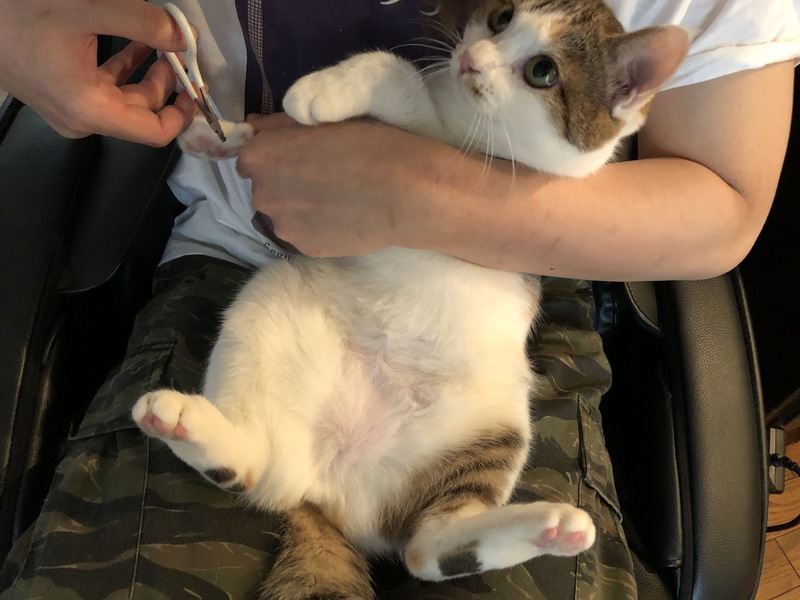 | 特徴(性格など) | むちむちコロコロ体型の 丸顔ベビーフェイスの美人さん。 人も好き、まだ若いのでとても遊び好き! ◎中くらいの長さのシッポ。見た目はわかりませんが 触ってみると 「幸運を招く」と言われている「カギシッポ」です。 ◎人が大好き!「ダッコ」「膝に乗ったり」「撫でなで」が大好きです。 ベタベタの「甘えん坊さん」 夜は人と一緒に寝る子だと思います。 ◎若猫ですので夢中になって遊びます。 ◎ご飯はなんでも食べます。手作りご飯もOKかと。 ■■■■■健康状態 FIV、Felv 、コロナウィルス共にマイナス よく食べよく眠りよく遊び 健康な子です。 ご飯はなんでも食べます。 健康維持のため 今は乳酸菌などのサプリを与えています。 爪も切れます。 むちむちコロコロで 現在体重3300g前後 |