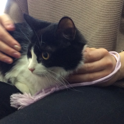 | 特徴(性格など) | 黒白のはちわれで、しっぽは長く、少し長毛系でフサフサしています。 性格は、慎重で賢く、譲渡会などでは大人しく抱っこも出来ますが まだ仔猫なので、好奇心旺盛でヤンチャな面もあります。 保護当初は、急激な環境の変化に戸惑い、やや警戒気味 でしたが、ほどなく順応しました。 なので、譲渡後は慣れるまで少し時間が必要ですが 慣れると、元気いっぱい、ジャレ遊びに夢中になります。 |