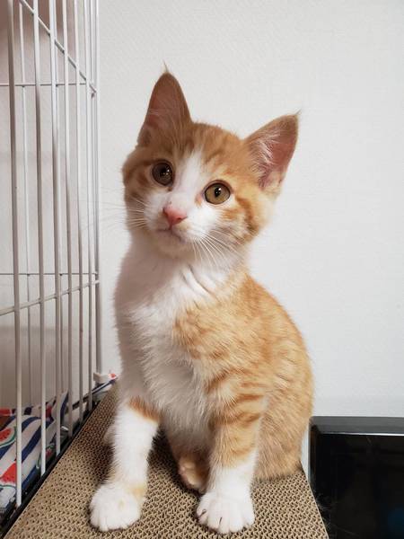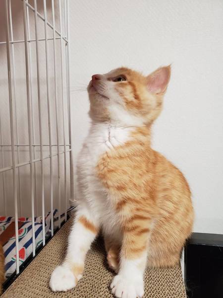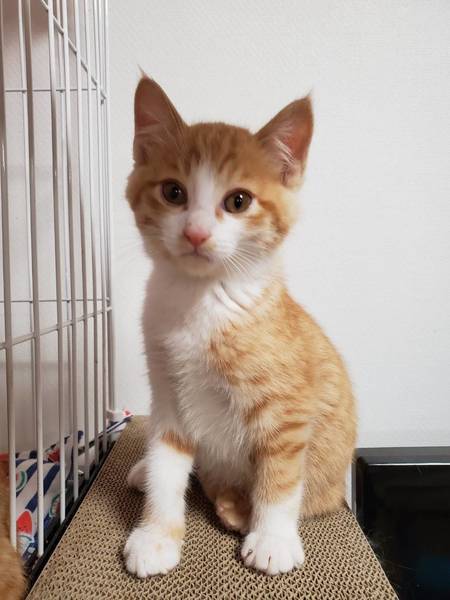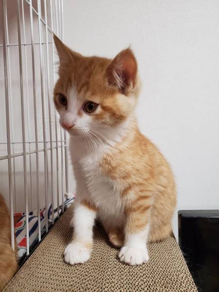 | 特徴(性格など) | 2019.9.21生まれ(推定) 毛色:茶・白 しっぽが短いとってもかわいい茶白の男の子。 おしゃべりもよくして、人に甘えてきます。 抱っこするとゴロゴロ甘えん坊さん。 ケージ慣れ・人慣れ・猫慣れしています。 |