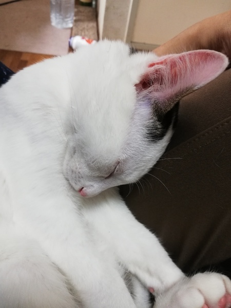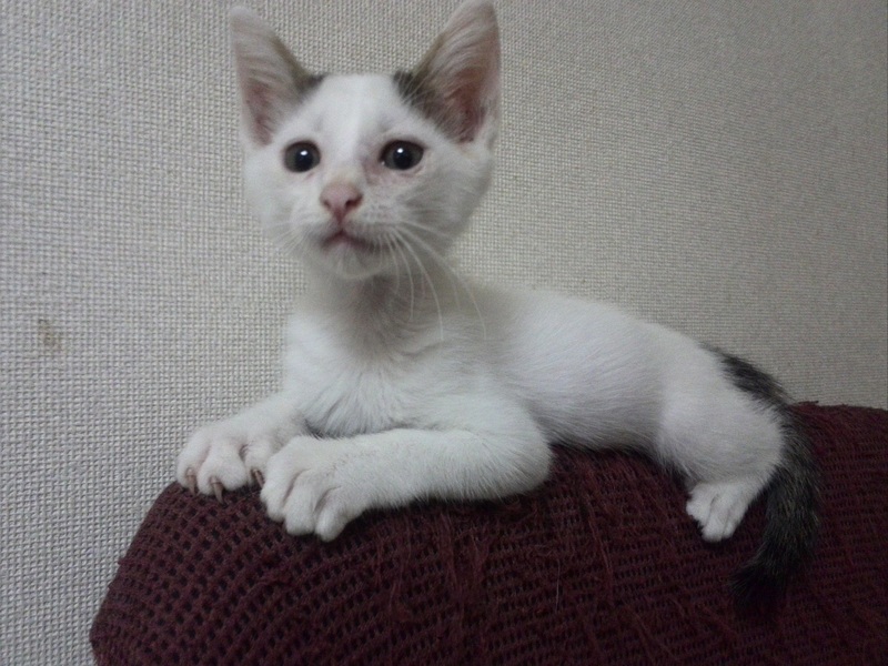 | 里親募集する理由 | 近所のマンションの駐車場で動けなくなっていました。 風邪をひいてノミがたくさん付いていて貧血を起こしていました。 我が家には他にも保護ネコがいるため新しいおウチを探す事になりました。 |