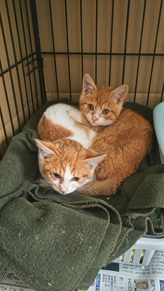 | 里親募集する理由 | 近所の方が餌をあげていた野良ちゃんが二匹産んでしまいました。母猫は不妊手術後、戻しましたが仔猫たちの里親さんになって頂けるご家庭を探しています。 | ||