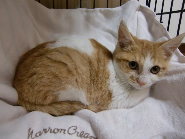 | 特徴(性格など) | 茶白でおとなしい性格です。他の猫ちゃんとも、お友達になれると思います。 | ||