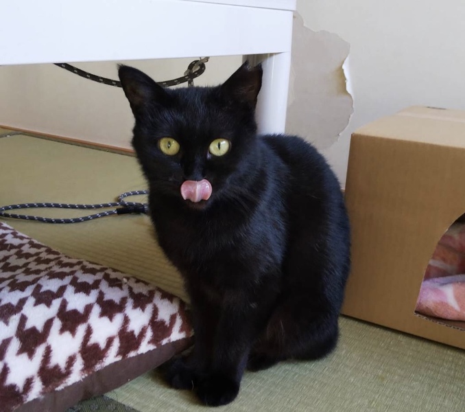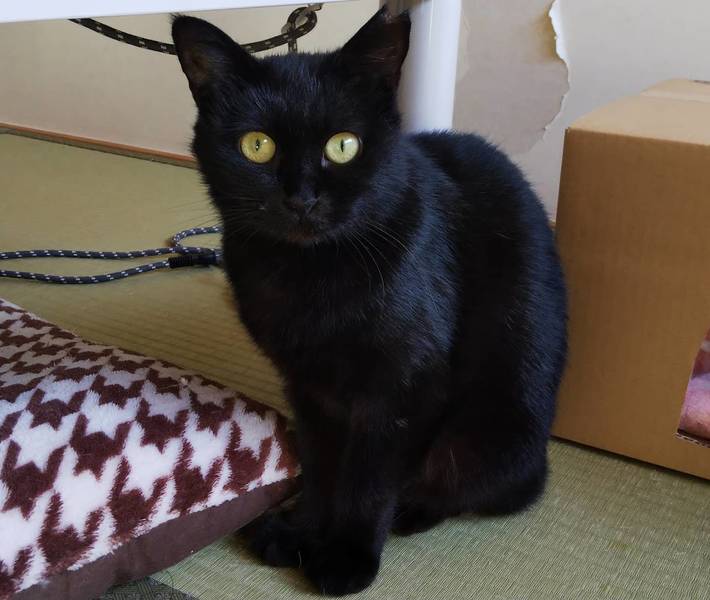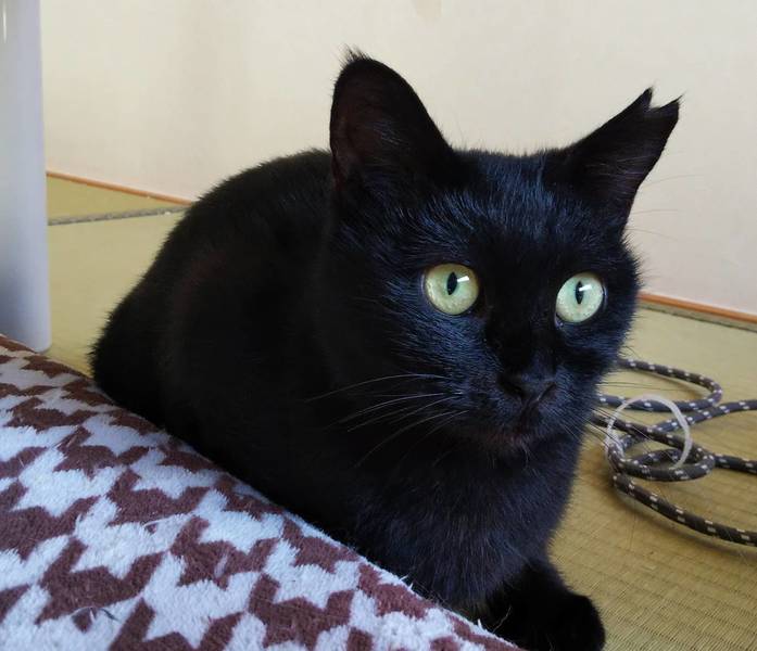 | 特徴(性格など) | 丸い顔に丸い目の綺麗な黒猫さん。 ちょっとシャイな子ですが、少しずつ人が好きになってきて、甘えるようになってきました。 ブラッシングされるのが大好き。 猫がたくさんいる場所で生活していたので多頭飼いのおうちでもうまくいきやすいかと思います。 エイズ白血病陰性。 |