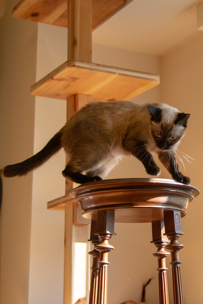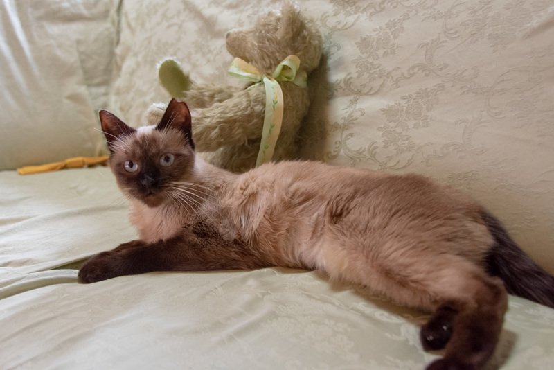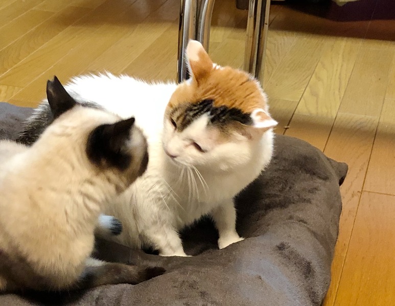 | 特徴(性格など) | ★とても小柄ですが成猫です。 仮名:おはね 毛色:シャム(純血種ですか?というお問い合わせをいただきましたが、MIXである可能性があります) 体重:2.9kg 月齢:1歳6ヶ月 日々の様子はツイッターでご覧いただけます! → @molko4126 優しいご家庭にお迎えいただけることを切に祈っています。どうぞよろしくお願いします。 【外見】 美しく透き通ったアイスブルーの瞳です。お顔のショコラ色がとても濃く出ているので、コントラストがとても美しいです。 顔・耳・手足のチョコレートポイントがくっきりと美しく出ています。 シャムの分類に掲載していますが、エクストリーム系のシャムではなく、タイに近い外見です。パーツが丸いので、子タヌキのようです。 おへその部分にもショコラ色の丸いポイントがあります。隠れたチャームポイントです。 体高・体重から見て8−9ヶ月ぐらいの体格ですが、一歳半の成猫です。 これ以上(太ることはあっても)骨格自体が大きくなる可能性は低いです。永遠の仔猫ちゃんです。 【性格】 性格・特徴かつてないほど可憐で寂しがりやさんです。人も猫も大好き。 外から帰ってきたとき、一番先に駆け寄ってお出迎えしてくれるのがこの子です。 保護した際はとてもやせ細っており(保護時2.5kg)、そんな子がかすれた声で一生懸命ニャンニャン言いながら駆け寄ってくる様子に心が痛みました。 抱っことおひざが大好きです。人にぴったりくっついてモフモフを要求してきます。初めてのお客さんや宅配便のお兄さんにも甘えてすり寄ってきます。 悲惨な環境で育ったにも関わらず、警戒心が全くありません。常にぽわーんとしているので、抱き上げるのもとても簡単です。 シャーシャー言わない、というより言えない子です。人間に対して攻撃や反抗が一切できません。ですのでやさしいご家庭にお迎えしてもらえたらと思っています。 他の猫ちゃんにくっつきたがる子なので、先住さんがいるお家でも楽しく生活できると思います。我が家には既に2匹の先住(12歳、1歳)がいますが、どちらの子とも仲良くしていました。 我が家の先住さんのうち、12歳の子は保護猫の面倒を進んでみるタイプではないのですが、この子のことだけは可愛がっており、夜も寄り添って寝ています。 いたずらや爪とぎトイレの失敗はしません。爪とぎは猫用の物を使ってやります。 先住猫がやっている行動範囲をよく観察していて、「どこまでならOKか」を慎重に判断しています。 一緒に生活したらきっと幸せな気持ちにさせてくれる、そんな子です。 一人(または1匹)がストレスになってしまう子です。 先住さんがいらっしゃるか、またはお留守番が少ないご家庭だとありがたく存じます。 【健康状態】 健康状態★ウイルス検査済み(FIV、FeLV共に陰性。証明書をお渡しします) ★ワクチン接種済 ★保護当時、臍(=へそ)ヘルニアを患っていたため、避妊手術の際に治療しました。 2週間後にに診察をし、問題ないとの所見をいただきました。念には念を入れて、月内に再診の予定です。 ★保護当時は食が細かったのですが、現在はもりもり食べる健康優良児です。 ニュートロのサーモンが大好きです。 |