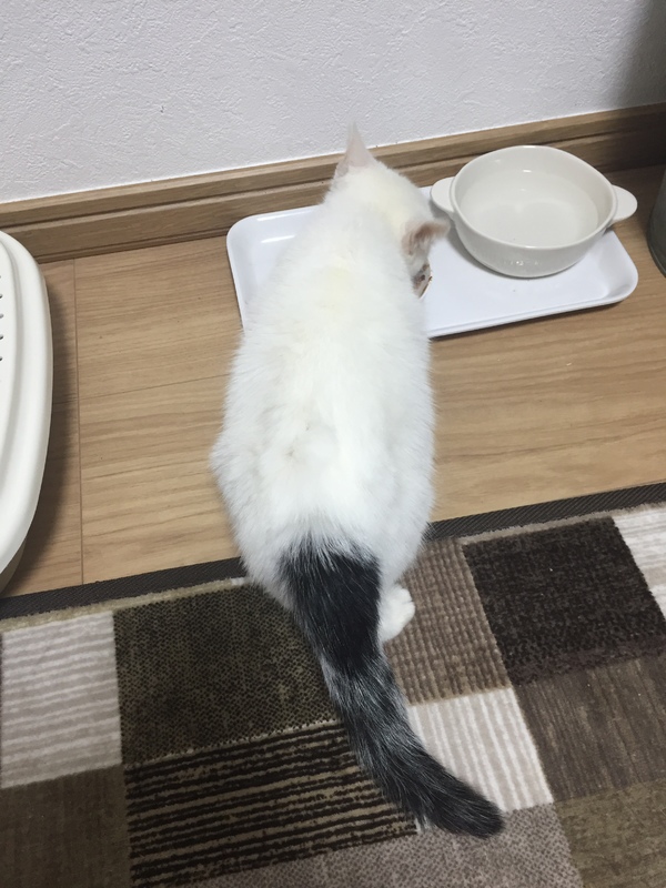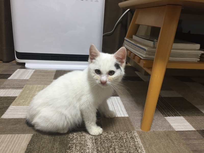 | 特徴(性格など) | 白い毛並みにお顔の一部に黒い模様があり、尻尾は白と黒が混ざっています。 誰にでも甘えに行き、よく喋ってくれて、寝る時も側を離れません。 とても可愛いです。 |