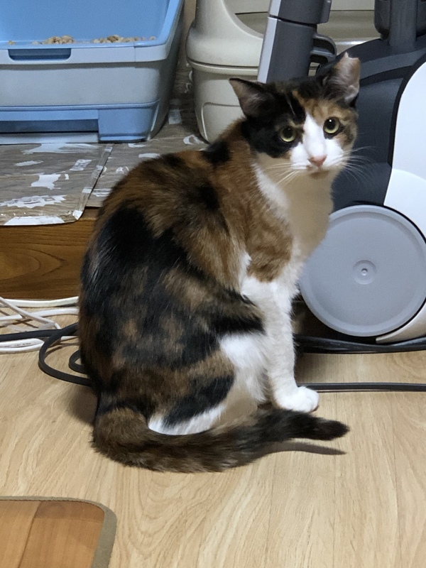 | 特徴(性格など) | 三毛猫、4キロ まだ少し逃げたりしますが日に日に懐いてきています。 抱っこもできます。凶暴性はありません。 長い目で見てこの子の付き合っていただける方よろしくお願いします。 |