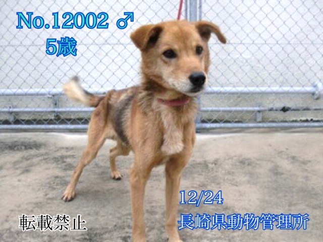 | 特徴(性格など) | 茶色の中型雑種、まだ5歳の可愛い垂れ耳男の子が飼育困難となった飼い主の手により長崎県動物管理所へ持ち込まれました。 犬はどんな飼い主でも信じています。 信じてきた飼い主に捨てられて収容された今どんなに寂しい思いでしょうか( ; ; ) でもそんな悲しい状況のままでいたより、良かったと考え、この子の幸せを、温かい本当の本物の家族を見つけたいと願っております⭐︎⭐︎ 飼育状態が良くなかったようで可哀想に爪は伸び、ガリガリでかなり痩せていますが食欲はあり元気にしています。 見た目の推定になりますが現在の体重は大体10キロあるか無いか位でしょうか。。 とても人懐こく尻尾フリフリで遊ぼうよと甘えてくれて切なくなります。お座りも出来る性格花マル君で身体中どこでも触らせてくれます(^^) 優しい職員さん方が今度こそは幸せになれます様にと毎日触れ合いながら、一生懸命にお世話してくださっています。 人間が焦らずゆっくり長い目で見守りながら、愛情を持って接すれば、この子ならきっとじきに新しい家庭に馴染んでいけるのでは、と思います。広い心でドンとこい^_^と仰って頂ける方、この子を幸せニコニコの笑顔にしてくださる方、いらっしゃいませんか?どうぞ宜しくお願い申し上げますm(_ _)m ⭐️必ず室内飼育で、譲渡後には速やかな病院受診、去勢手術をする事が可能な、なるべくお留守番が少ない、沢山優しく触れ合っていただけるご家庭。 ⭐️トイレトレーニングも1からとなります m(_ _)m 未去勢で片足を上げて排尿します。何かと手がかかり大変ですが(マナーベルトやL字型のトイレを用意など)覚悟と理解で受け入れて下さる方。 ※ お早めに去勢手術をお願いしますm(_ _)m ⭐️犬の飼育経験があり愛情を持って犬をしっかり躾することが出来る方、お散歩や運動に充分時間をあてられる方、場合によりトレーニング教室なども視野に入れて考えてくださる方。 何卒宜しくお願い致します。 ⭐️狂犬病予防接種、フィラリア予防や混合ワクチン実績の有無も分かりません。 以上の点を踏まえ、この子の置かれている状況をご理解の上、全て受け入れ、寄り添いながら愛情を注いでくださるご家庭で可愛がっていただきたいと願っております。 収容された全ての子は身勝手な人間による被害者であり、何も悪くありません( ; ; ) 家族の一員として生涯大切にしてくださる優しいご家庭とのご縁が結ばれ、新しい年は幸せになれます様に!♡ 1日も早く温かな愛情を目一杯注がれながら、元気に幸せに生きてほしいです。人間より遙かに短い生涯です。 冷たく硬いコンクリートの上、檻の中で、命の期限が迫る中、ひたすら優しい素敵な里親様を待ち続けています。 悲しい事にこの世の中、人間に飼われないと犬は生きていく事が出来ません。 捨てる飼い主、探さない飼い主、医療にかけない飼い主、虐待する飼い主…飼い主を選ぶ事も出来ません。 まだまだこれからのこの子を、生涯大切に可愛がって下さる優しい素敵な里親様、どうかお願い致します。きっと、必ず最高の家族になります! もうこれ以上悲しくて辛い目に遭わせたくありません。本当の愛情、温もりを知ってほしい、辛かった分、寂しかった分、まだまだこれからの犬生はのびのびと幸せいっぱいに愛し愛されて、生きてほしいと願っております♡ 家族の一員に迎え、愛ある温かなお家で、これからの生涯を共に暮らして頂けませんか。生涯大切にしてくださる優しいご家庭とのご縁が結ばれ幸せな新年を迎えられますように⭐︎⭐︎ 何卒宜しくお願い致します(๑•ᴗ•๑)♡! ◆健康状態 見た目の推定になりますが現在の体重は大体10キロあるか無いか位でしょうか。。 飼育状態が良くなかったようで可哀想に爪は伸び、ガリガリでかなり痩せています( ; ; )今のところ食欲はあり元気にしています。 管理所では収容するのみ、になり、健康診断やワクチンなどは一切行っておりません。 ※狂犬病予防接種、フィラリア予防や混合ワクチン実績の有無は不明です。 収容動物の健康面の保証、及びトライアル制度は無い為、例えどんな病があろうとも全てを受け止め、この子を丸ごと受け入れて下さる方、終生愛情飼養して下さる方、のみ への譲渡となります事をご理解、ご了承の程何卒宜しくお願い申し上げますm(_ _)m ※譲渡後は必ずお早めに病院でメディカルチェック(血液検査、便検査、フロントライン、シャンプー等)不妊手術を確実にお願い致します。 ★去勢、避妊手術は長崎県動物管理所より譲渡条件の1つになります(健康状態によります) ★逸走、脱走にはくれぐれもご注意願いますm(_ _)m 急に走り出してリードから手を離してしまった、一瞬の隙をついて開いたドアの隙間から飛び出して行ってしまった、というケースもございます( ; ; ) まだ慣れていない状態で逃がしてしまうと呼び戻す事、捕まえる事は非常に困難になります。 細心の注意を払い、たすき掛けやダブル、トリ