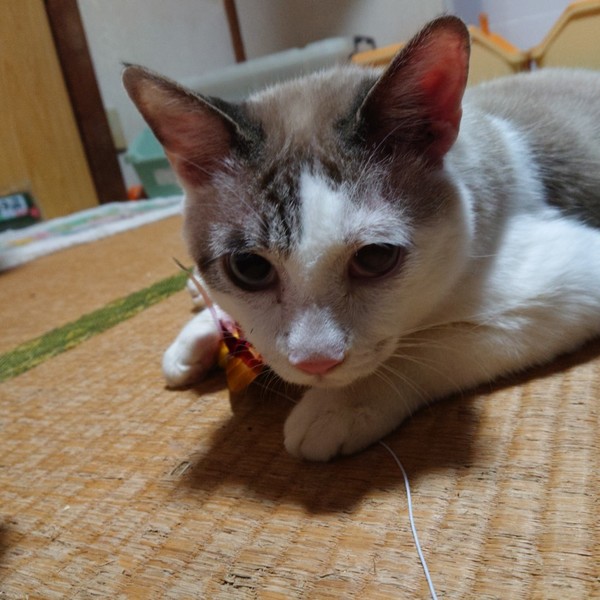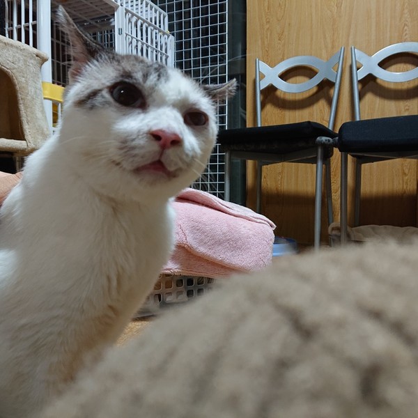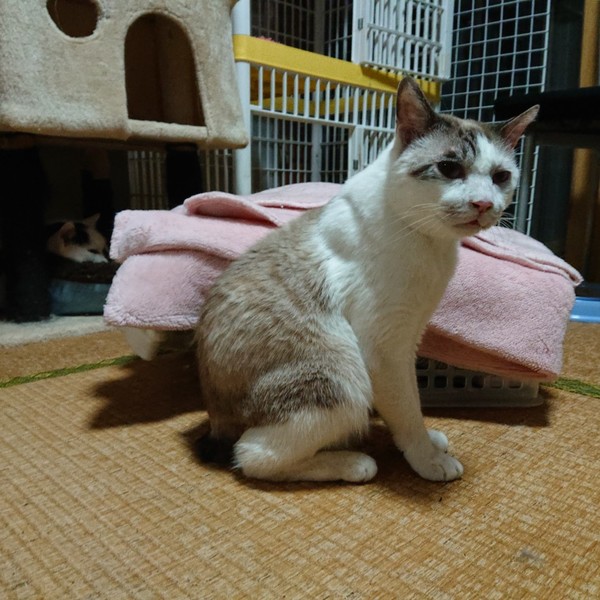 | 特徴(性格など) | 尻尾はジャパニーズボブテール・美しいベェージュと白の毛色です。瞳はブルーですが左目に障害があるようで獣医さんの見解では先天性ではないかということです。元気が良すぎて他の猫たちに嫌われてしまいます。悪気はなく遊びたいだけなのです。誰にでも懐きあいそうが良くて可愛い子です。面会したらびっくりの子です。ワクチン・エイズ・白血検査陰性・虚勢済 | ||
