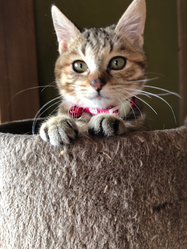 | 特徴(性格など) | 茶トラで小柄な女の子 とても明るく、誰にでもお腹を出して大歓迎です。 |