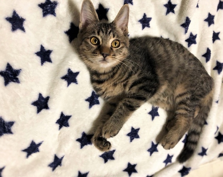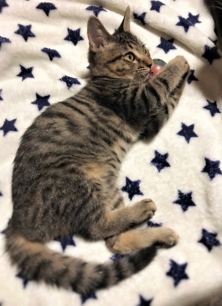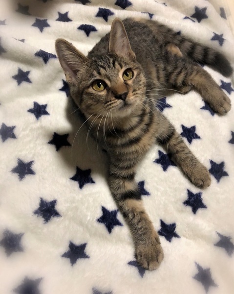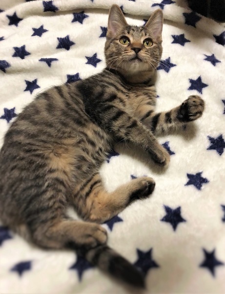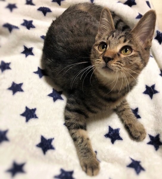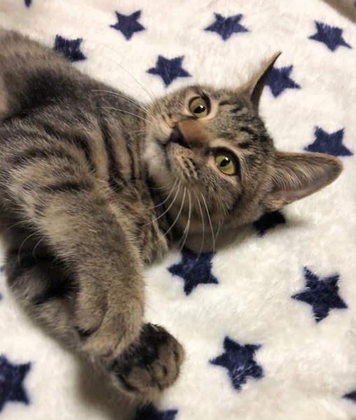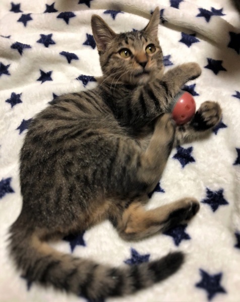 | 特徴(性格など) | まんまる顔・柔らかいふわふわ被毛・少し濃い色のキジトラ女の子。 とても元気で、めちゃめちゃ甘えん坊さん。 ねこじゃらしは何故か怖いようですが、転がるボールのオモチャがあると夢中になって遊びます。 何事にも一生懸命。 甘えたくなった時は、一直線に膝を目指して走って来ます。 |