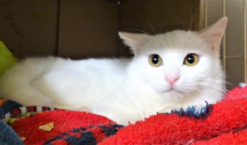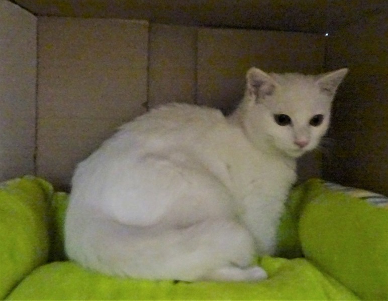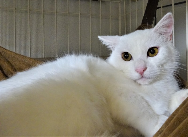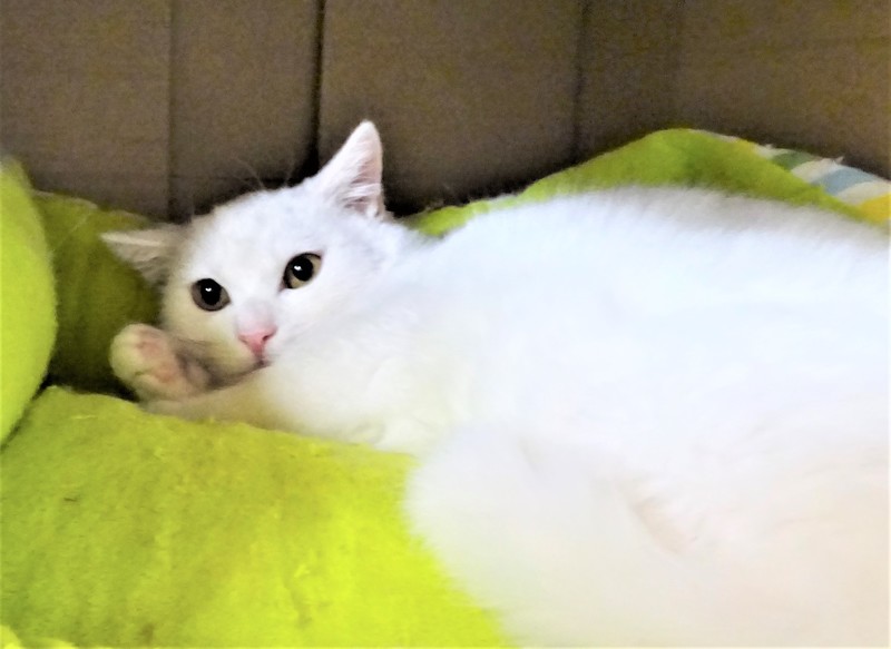 | 特徴(性格など) | 仮名: ハクくん(オス) 毛色: 白色 性格: 怖がりですが、抱っこしたり出来ますし、じゃらしでの遊びも出来ます。 普通の子よりはちょっとした事でイカ耳にしてしまいます。 触ると手にじゃれてきたりしますよ。 普段は大人しく、他猫ともプロレスをしたりするほどではないですが、トラブルなく付き合えるようです。 初めは2段以上のケージを準備して頂き、そこにいる間に馴らしていく方が良いかと思います。 最初から好き勝手にさせると、どこかに引きこもってしまいそうです。 猫初心者の方よりは猫経験者の方が良いかと思います。 ノミ取り済 検便済 駆虫済 3種混合ワクチン済 去勢手術済 猫エイズ・白血病ウィルス検査はともに陰性です |