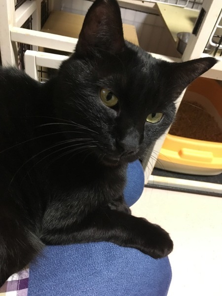 | 特徴(性格など) | 健康状態 良好。 エイズ陽性 白血病陰性 ノミダニ駆除済、検便済 猫の性格 カワイイ声の大きな黒猫です。 自ら膝に乗って、甘えてきます。 撫で撫での催促をするのに、すぐ床にゴロンと寝ます。 他の猫とも仲良く暮らせます。 猫エイズ陽性ですが他の猫とも仲良く暮らしていますので、エイズ陽性の先住猫さんがいらっしゃる環境からのご応募もお待ちしております。 黒多めで分かりにくいですが、膝に乗って甘えている様子の動画も掲載します。 |