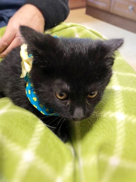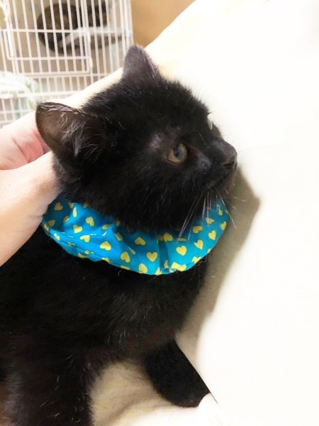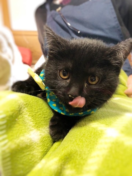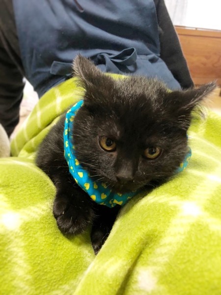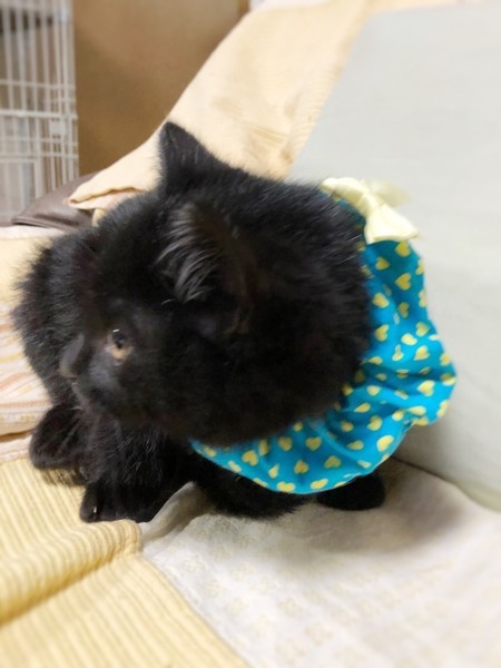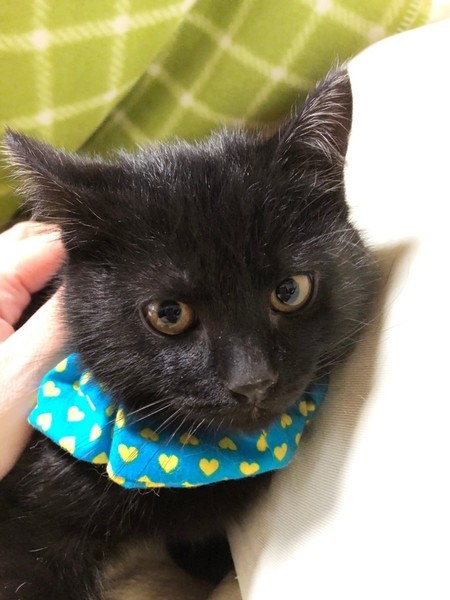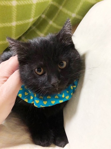 | 特徴(性格など) | まんまる顔のかわいい黒猫の男の子です。子猫らしく、よく食べよく遊び、元気に過ごしています。 | ||