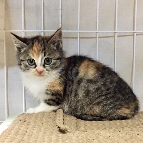 | 特徴(性格など) | まだ怖がりさんですが、遊び方を見ていると自由奔放なミケジョといった感じです。 丸顔が可愛いので、これからが楽しみな猫ちゃんです。 兄妹の圭くんと一緒にお迎えいただけると嬉しいです。 |