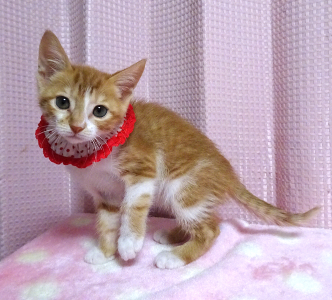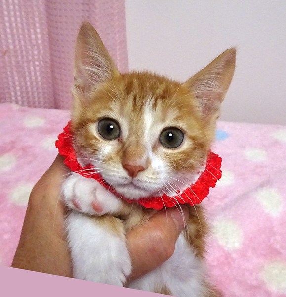 | 特徴(性格など) | 【猫の仮名】 クルミちゃん (担当 松嶋) 【毛色・柄】 茶白、長いシッポ 人に育てられたので大変人慣れしています♪ 小さくてもトイレのできる賢い子です♪ ●ウイルス検査(エイズ・白血病検査) 陰性 ●ワクチン 1回 ●蚤取り 1回 ●駆虫 2回 ●検便 2回 ●シャンプー 2回 走っても大丈夫な持ち家のお住まいで、猫だけのお留守番が長時間でないご家族を募集しています。 |