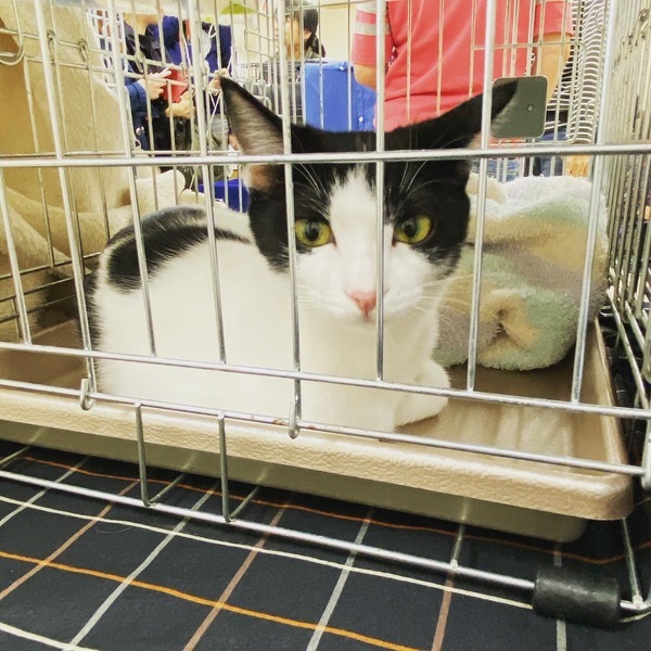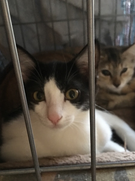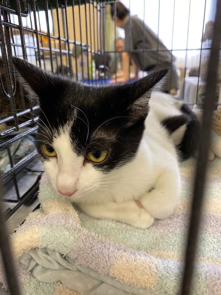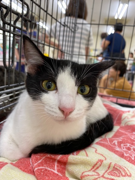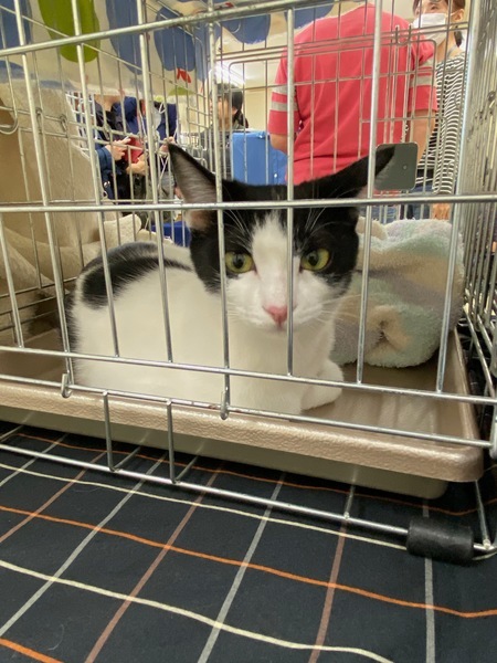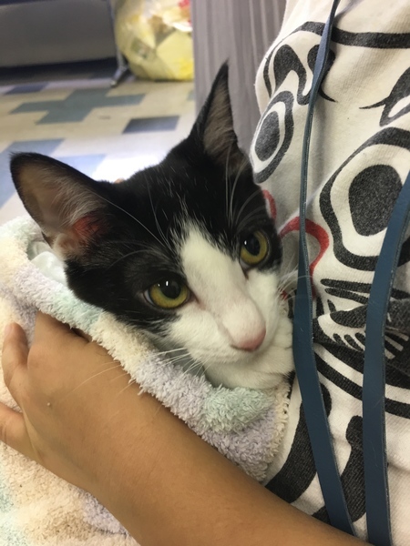 | 特徴(性格など) | モモ(仮名)ちゃんです。メス。 生後約7ヶ月です。短毛な白黒鉢割れ水玉柄、ジッとこちらを見つめるつぶらな瞳、首をかしげて人を見つめ、人が寝てれば背中に乗るのが大好きな子です^^シッポはスラッとまっすぐでビックリするくらい長いです。活発で積極的、グルグルゴロゴロノドをならす音が大きめです(#^.^#)人慣れバッチリ、オモチャ大好き! 大人猫さんも大好きです^^ レボリューション・初回ワクチン・追加接種、避妊手術(12/21)済みです。血液検査マイナス。 保護時はかなり状態が悪かったのですが、必死の治療のおかげでピカピカの健康体です!カリカリを食べています。普通体型ですが短毛のせいでスレンダーに見えます。 |