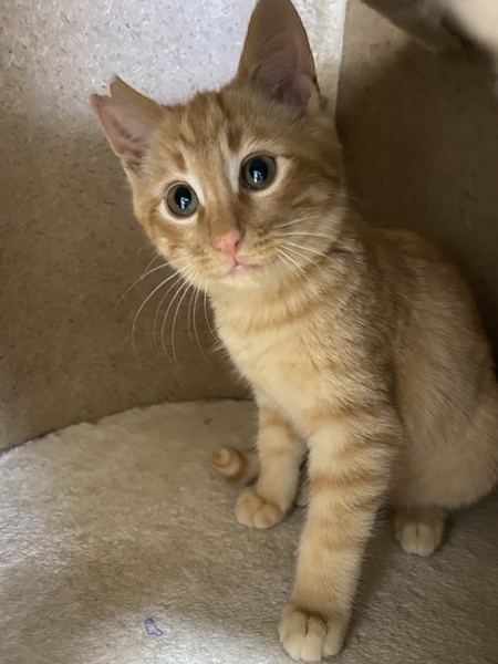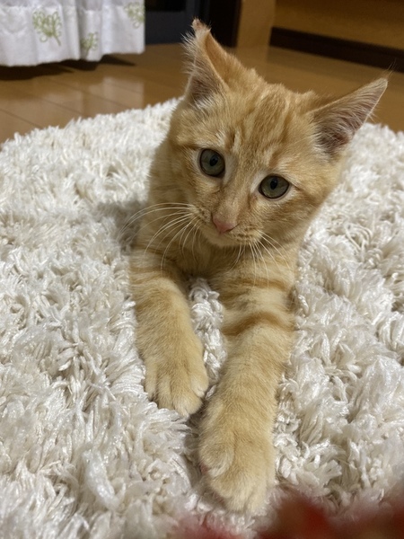 | 里親募集する理由 | 大型施設のガレージに子猫が一匹でウロウロしていて母猫がいないか様子を見ていましたが、母猫は現れず子猫は一匹でいて鳴いていたので、このままでは行き場もなくガレージなので車にひかれてしまう危険があり保護しました。我が家は多頭の為、茶トラ君を幸せにしてくださるおうちを探しています。 飼い主が不在確認済みです。 |