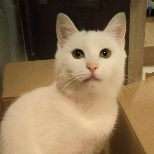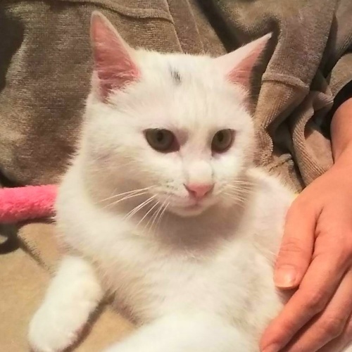 | 特徴(性格など) | 外にいたときからゴロゴロでした。 綺麗な白猫で頭に薄墨が付いたような模様があります。 大人の猫とも仲良く甘えて一緒に寝たり、人にもゴロゴロスリスリの甘えっ子です。まだ若いのではしゃぐ時もありますが、ご飯の時は可愛い小さい声で催促します。 |