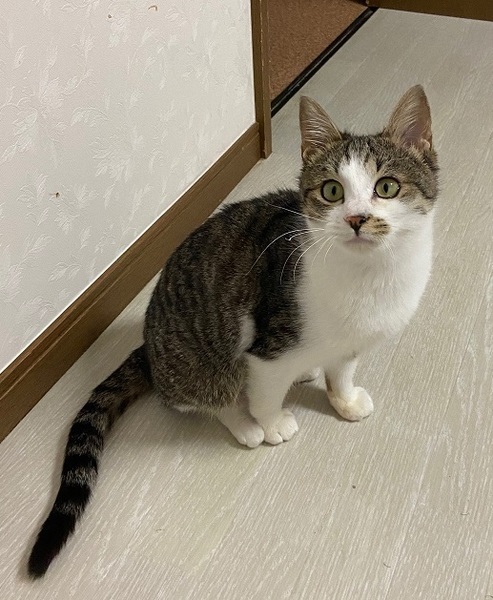| 特徴(性格など) | キジシロ、しっぽは長くてまっすぐ。 検便陰性。レボリューションプラス2回済。 初対面では恥ずかしがることがあるかもしれませんが、ほどなくして慣れます。 懐こい子です。 他猫にくっついたり、一緒に遊ぶのが好きなので、遊び好きな先住猫さんの遊び相手にも向いています。 月齢的にお留守番もできます。 |