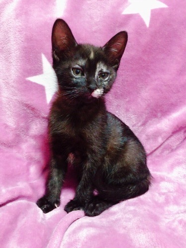 | 特徴(性格など) | 【仮名】チコリー 【性格】甘ったれでおてんばな女の子。 ピョンピョン跳ね回ってゴハンや水のお皿にダイブしてしまうので要注意ネコちゃんです。 身体は小さいけど食べるの大好き 眠くなったらお膝に乗って来ます。 まだまだ小さく遊び方も学んでいる最中ですので、兄妹とのお迎え、お留守番が少ないオウチを希望します。 |