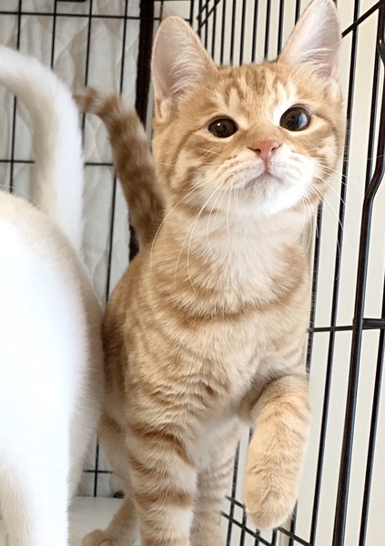| 特徴(性格など) | ・健康状態良好 ・ワクチン接種(3種2回) ・エイズ(+)、白血病(-) ・体内外駆虫 ・目の治療については、点眼・内服は終了しましたが、まつ毛が伸びると内側に入ってくる為、定期的に抜く必要があります。今後、別の方法にて治療するか検討しています。 保護した兄妹の中の紅一点でしかもめずらしい茶トラの女の子♪ お顔もとってもかわいらしいです。 最初は人見知りするかもしれないちょっとシャイな性格ですが、他の兄弟が抱っこされていると気になって手を出してくる実は抱っこ好き。 エイズ陽性と出た為、他の陽性の兄弟と一緒に仲良く過ごしています。 エイズは発症しなければ10年以上生きる子もたくさんおります。 エイズ・白血病キャリアやハンデのある子たちはなかなかご縁が見つからず、いつも厳しい状況です。 さらに生まれた環境が過酷であった為、猫風邪が悪化し、保護時は塞がっていた片目も預かりボランティアさんたちの献身的なお世話できれいに開きました。 この現場の兄弟たちは目の障害とエイズキャリアというダブルハンデを背負った泣けてくるような境遇です。 それでも健気に生きているこの子の為に大切にしてくださる里親さんを見つけてあげたいと思っています。 ずっと安心して暮らせる家族とお家に巡り会えますよう皆様のご協力よろしくお願いします。 もしよろしければお留守番も寂しくないよう兄弟一緒にご検討いただけましたら安心です。 現場から10匹保護し数頭ずつ一緒に預かりさん宅で過ごしています。 もちろん1匹でもお問合せください。 優しい里親様お待ちしております! |