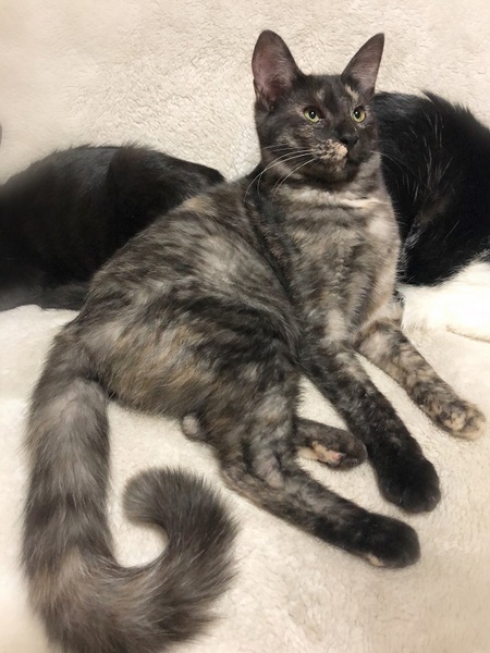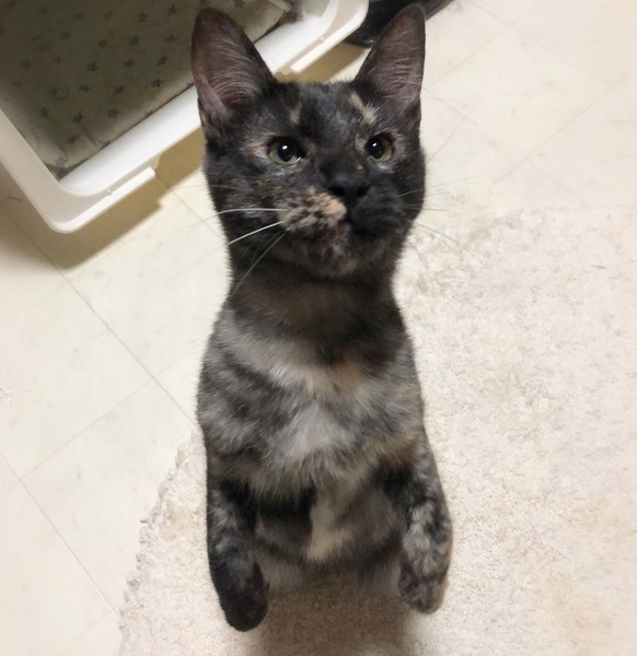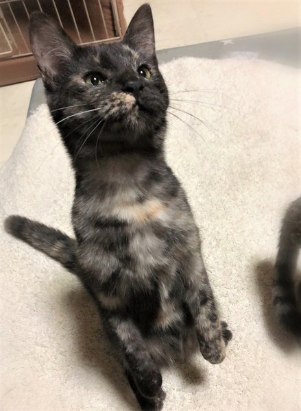 | 特徴(性格など) | 仮名、ココ 淡い配色スモークサビの女の子。 耳とシッポの毛が少し長いです。 環境に慣れるまで、少し時間が必要です。 認識力が高く、よく人の行動を観察しています。 オモチャで遊ぶ事が大好き。一途な性格で、ご飯をくれよく遊んでくれる人の近くにいつもいます。 |