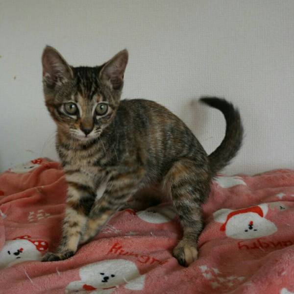 | 特徴(性格など) | 推定生年月日:2019年11月1日 毛色:二毛(ブラウントービー) しっぽ:すらっと長い 鮮やかな毛色の可愛い女の子。 ご機嫌でよく遊び元気いっぱい、撫でるとゴロゴロ♪ 社交的で懐っこい子なので"初めての子猫"にもオススメです。 7兄弟姉妹(マーキュリ・ヴィーナス・マーズ・サターン・ウラノス・ネプチューン・プルート)仲良しなので、一緒のお迎え大歓迎です。 ☆不妊去勢手術済 ☆ワクチン2回済 ☆ノミダニ取り済 ☆駆虫済 ☆マイクロチップ挿入済 ☆トイレしつけ済 ☆ウイルス検査 エイズ 陰性、白血病 陰性 |