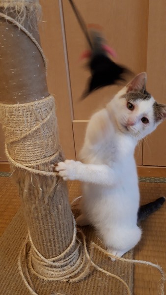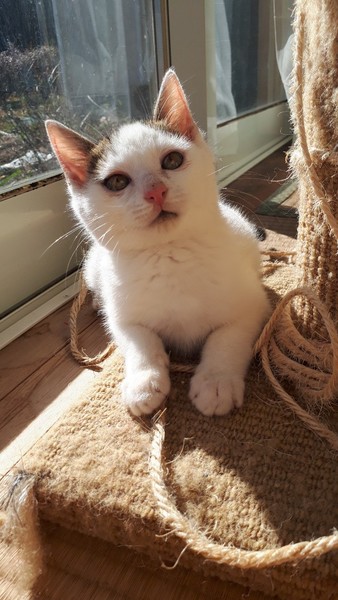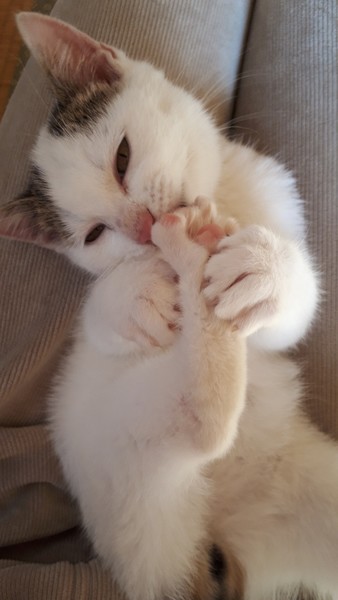 | 特徴(性格など) | 2019.9.21生まれ(推定) 毛色:キジ白 クリスマスの少し前、ボランティアの庭に現れ、ぴぁぴぁ鳴いていたので、ぴぁ君と仮名がつけられました。 最初は泥だらけで、風邪もひいていましたが、治ると元気な男の子に!! 見た感じ・触ったモフモフ感、動きのちょっとぎこちなさが、何となく白い犬を思わせると抱っこした人に言われています♪ おっとりした性格で、気の強いお姉さん猫にシャーと言われてもあまり気にしません。 人間と猫がとても大好きな男の子です。 |