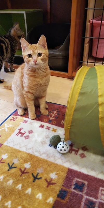 | 特徴(性格など) | 少し人見知りしますが、懐こくなってきました。 珍しい、茶トラの女の子です。 |
