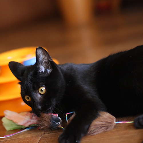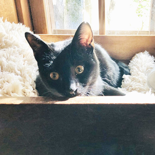 | 特徴(性格など) | 人間大好きで人見知りしないフレンドリー猫。 趣味はスリッパの運搬です。 猫ともうまくやれます。 尻尾がピカチュウみたいなイナズマ型で胸毛と腹毛にこっそり白のポイントがあるおしゃれさんです。 兄弟のロシアくんと毎日競走馬のように走っています。 |