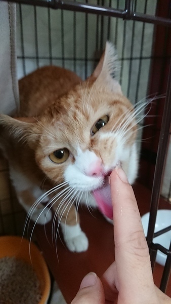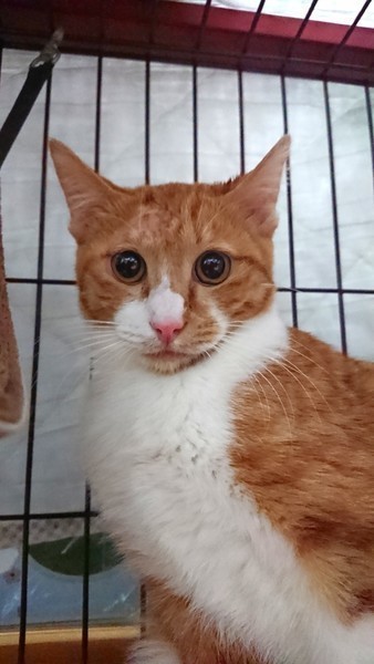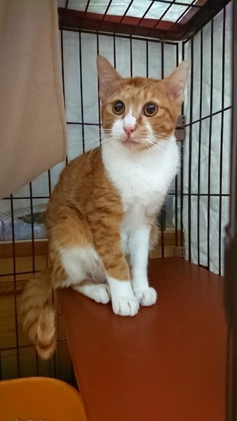 | 特徴(性格など) | 茶白の男の子です。 おっとりしていていますが、ごはんやおやつのときはきっちり催促します。 保護した当初はびくびくしていていましたが、現在はあごの下など触られるのが大好きです。 気長に慣れるまで待っていただける方、よろしくお願い致します。 |