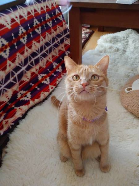 | 特徴(性格など) | 仮名: アナちゃん(メス) 毛色: 茶トラ(マルトラ)尻尾は長い 性格: 初めて会ったときから抱っこ出来る人馴れした子です。 好奇心旺盛で探検大好き。 自由にあちこちを走りまわっています。 甘えん坊で、ちょっと人が横になっていると、お腹や首元に一緒に横になったりして甘えます。 姉妹のエルサちゃんとはずっと一緒だったので、これからも一緒に居させてやりたいです。 一緒のお家が希望です。 ノミ取り済 検便済 駆虫済 3種混合ワクチン済 避妊手術済 猫エイズ・白血病ウィルス検査は陰性です |
