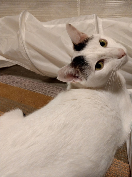 | 特徴(性格など) | こんにちは、ぼく、ヒバリです ニョロンと長い顔のぼくも、最近は冬毛でマルマルしてます··· えー?可愛い??照れるにゃ~ ぼくの性格は、昼ビビり、夜スリゴロ!? そして、自覚はにゃいけど、アホなこともたくさんしてるみたい(笑) 預かりおばちゃんからは、「おもしろい子だねぇ」って···とても誉められてます 昼は人もバタバタしてるでしょ? それが、まだちょっとドキドキして、ビビっちゃうんだけど。 その分、人がリラックスしてる夜にくっついて、ふみふみして、なでなでしてもらって···腕や脚に挟まって眠るんだ 抱っこも、少しずつ練習しているよ~ ぼくは大人猫だからね、もちろん、お留守番もちゃんとできます パパママが疲れて帰ってきたら、ぼくがふみふみマッサージで癒してあげるからね 譲渡会は4回目!慣れたもんさ おもちみたいに、白くてフワフワなぼくに、会いに来てね よろしくお願いしまーす ――――――――――――――――――――――――――――― ちょっとビビりだけど、慣れるとスリゴロな、とってもかわいい白キジのオスくんのご紹介です。 ビビりスイッチが入ると、ダッシュで隠れちゃいますが、本心はくっついて撫で撫でしてほしい、甘えん坊です。 くっついて丸まってる時に、いっぱい撫で、そーっと包むように抱き上げる感じで、抱っこも練習中です。 既にご報告の通り、ヒバリくんは一度、里子に出ております。 里親様との相性はバッチリでしたが、先住猫さんが極度のヤキモチやきさんで、うまくいかず、戻ってきました。 ヒバリくん自体は、預かり宅でも他の猫と暮らしていて、大きなケンカをすることはありません。 性格は、とても良い子だと思います。 しかしながら、ヒバリくんの事を考えると、できれば1匹飼いでお願いしたいと思います。 年齢もまだ若く、2歳ぐらいです。 お留守番も全く問題なく、フルタイムでお仕事をお持ちの方でもOKです。 猫飼い初心者さんにもオススメできます。 お子さんのいるご家庭も、アレルギー検査をパスしていればOKです。 単身者の方も、後継人を明らかにしてくだされば問題ありません。 ヒバリくんですが、ケージ生活にも慣らしております。 はじめは慣れるまで、しばらくケージで過ごさせください。 大型台風の時などを思うと、ケージは何かあった時の為にもご用意してくださるとありがたいです。 とてもかわいい子ですので、ぜひ、よろしくお願いします。 |