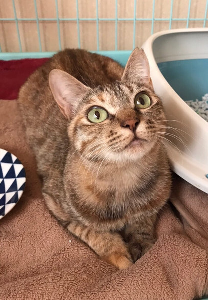 | 特徴(性格など) | あたちは、『マル』って呼ばれてます。 尻尾の先がマルいのと、何でもマルくおさめちゃうタイプだからマルなんだってさ 夏は唸るような暑さに耐え、冬は凍えような寒さに耐え、何年も締め切られた汚い汚物だらけのお部屋で生き延びてきたの。 ある日のこと。あたちは、突然、連れ去られて行きました。 連れて来られた所は、まるで楽園のよう 清潔な寝床に、栄養たっぷりのご飯もあるし、エアコンの効いた快適な空間 あたち、幸せを感じたわ 『マルは、家族が出来たらもっともっと幸せになれるよ!』 と言われたわ。 これ以上の幸せってあるの??? あたち、これ以上幸せになれるの??? だったら、わたし、がんばる 譲渡会で一生懸命アピールして、一生の幸せを掴む為にがんばる 遊ぶことが大好きなあたちをよろしくお願いしますにゃ♡ ―――――――――――――――――――――――――――――― 今からご紹介するマルですが、多頭崩壊現場からレスキューした子です。 マルを保護した詳しい経緯は、当会のブログ記事をお読みくだされば幸いです。 https://ameblo.jp/team-rose-cats/entry-12545196757.html 地獄のような現場で生き抜いたマルちゃん。 小柄で美しいキジ三毛の成猫で約7歳です。なんと、今回の多頭崩壊現場のゴットマザーと呼ばれております。マルちゃんの子供達が多く生き残っていたのです。 年齢を感じさせない、正しく美魔女とはマルちゃんのことを言うのだと思います。 性格は、明るくて、とにかく元気いっぱいです!遊ぶことが大好きで、何でもおもちゃにして遊んでしまいます。 物怖じせず、天真爛漫な子です。 今現在は、(多分)マルちゃんの娘だと思われるハローと一緒に仲良く保護生活を送っております。 あんな過酷な現場にいたのに、捻くれる事もなく、物凄く性格が良くて、元気ハツラツとした子です。 食欲も旺盛で、食いしん坊さんで、遊びも大好き。 ですから迎えてくださる里親様は堪らなくかわいいと思います。 もう既に、現在 預かりさん宅を自由に、普通の家猫として生活しているので、いつでも里子に出せる子ですが、はじめはトイレを覚えて貰う為、ケージ飼いからスタートしてください。直ぐに使わなくなりそうなので、使っていたケージの貸し出しもできます。 汚い汚物まみれの現場にいたので、シャンプーもブラッシングも徹底し、輝くような美猫へと変貌を遂げました! ブラッシングも大好きです! とても飼いやすい子なので、猫飼い初心者のご家族でも、お子さんのいるご家庭でも、お仕事をお持ちのご家庭でも、単身者のご家庭でも、問題ないと思います。高齢のご夫妻など後継人様を明らかにしてくだされば、マルちゃんはとてもオススメの子です。 マルちゃん自身は、どんな猫にも動じない子ですし、猫は大好きです。 先住猫さんさえ動じない子であれば問題はありません。 過酷な現場で、精一杯、生き抜いたマルちゃんに、本当の幸せを掴んで貰いたいと心から強く願います。 どうぞ、マルちゃんを、よろしくお願い申し上げます。 |