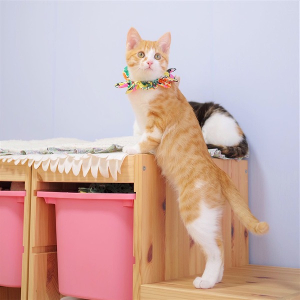 | 里親募集する理由 | 隣町の野良猫がたくさん暮らしている 繁華街で生まれました。 毎日ごはんをあげて母猫たちをかわいがっている スナックのママさんから依頼を受けて保護しました。 急にお母さんと離されて 始めは怖がったり、威嚇したりしていましたが すぐにお家にも人にも慣れて 甘えん坊で元気いっぱいに成長しました。 たくさん甘えたいラテ君には いつもそばで見守ってくれる優しい家族をと思い 里親さまを募集いたします。 ラテ君たちのお母さんと 一緒にごはんをもらっている一族の猫たちは 8匹みな不妊手術を行い まだ子猫だった シロップちゃんホイップちゃんの2匹は私が保護 大人の6匹はリターンして スナックのママさんや地域の方たちに 見守られながら暮らしています。 |