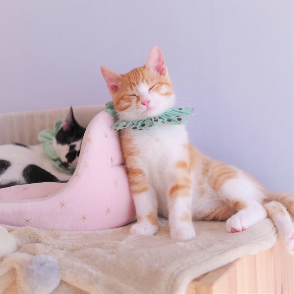 | 特徴(性格など) | ◆健康状態◆ 毎日元気いっぱいに遊び ごはんもたくさん食べて健康状態はとても良好です。 ☆3種ワクチン1回接種済み ☆内外駆虫済み ☆パルボウィルス陰性(-) ☆ラテ君は猫エイズ猫白血病の検査をしていませんが 代表で検査をしたキャラメル君は陰性です。 現在の4ヶ月ほど 体重は2キロです。 保護時、風邪の症状と コクシジウム(お腹の虫)による下痢がありましたが 治療し回復しています。 ◆猫ちゃんの特徴◆ ☆ラテ君☆ 生後4ヶ月の男の子です。 ピンクのお鼻と うるうるの瞳がとってもかわいい ラテ君は 甘えん坊でマイペースな癒し系の男の子です。 兄弟イチ甘えん坊のゴロゴロ音が大きいラテ君 他の子をなでなでしたり抱っこしていると 必ずそばへ来て大きなゴロゴロで 『ぼくもいましゅよ~♪』とアピールしてくれます。 おもちゃも追いかけっこも大好きですが おっとりした優しい性格で 幸せそうにみんなとお昼寝している姿は とても癒されます。 通院や爪切りブラッシング、おトイレなど 上手にできます。 とても甘えん坊で優しい性格でなので 猫ちゃんと暮らすのが初めての方 小さなお子さまがいらっしゃるお家でも 仲良く暮らせる猫ちゃんだと思います。 ☆仲良し兄弟と一緒に☆ 兄弟のキャラメル君、モカちゃん、ココアちゃん 従妹のシロップちゃん、ホイップちゃんととても仲良しです。 子猫同士で一緒に成長することで 遊びながらいろいろなことを学びます。 2匹以上で一緒に迎えていただけるお家とご縁がありましたらうれしいです。 |