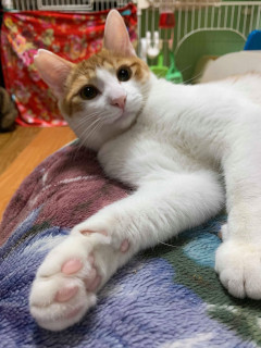 | 特徴(性格など) | 仮名を『クスクス』と言います。 茶白の男の子で、尻尾は長めです。 TNR現場で保護されました。 小柄で女の子らしい顔つきや表情をしていますが、歴とした男子です。 お顔のシンメトリーな模様もまた、女子力を上げているのかもしれません。 最初だけ人見知りありますが、一緒に遊んでくれる人。 美味しいものをくれる人。 愛情を注いでくれる人。が大好きです。 他の猫たちとも仲良く過ごし、とても友好的です。 仲良しな仔と二頭一緒か、フレンドリーな先住猫さんのいるお家だと、新しい環境に慣れるのも早いかもしれません。 一頭だけの飼い主さんの愛情独り占めは、それはそれでかなりの甘えん坊になりそうな予感。 ナデナデも喜びます。 お留守番も出来るので、共働きのご家庭でも大丈夫です。 可愛い『クスクス』に是非ぜひ会いに来てください。 【医療処置情報】これから実施のも含まれます *健康チェック *3種混合ワクチン接種 *ウイルス検査実施(FIV.FeLV共に陰性) *検便実施 *駆虫薬投与(レボリューション、ドロンタール) *マイクロチップ装着 *不妊・去勢手術 |