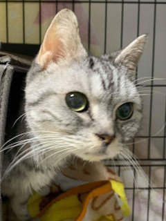 | 特徴(性格など) | 仮名を『ひめ』と言います。 アメリカンショートヘアの3歳くらいの女の子で、避妊手術済みとのことでした。(獣医師見立て) 草むらで衰弱していたところを保護されました。マイクロチップの装着はなく、関係各所届出済みです。 元の飼い主さんも探しつつ、まもなく保護から3ヶ月が経過しますので、里親さん探しも並行して行うことにしました。 ひめの状態から、保護されていなければ、そのままだったらひめは今、生きてはいなかったと思います。 ご近所さんで飼われていた仔でもなく、全く見たこともなかった仔がある日突然草むらの中から現れて、 被毛がキレイで、しかし衰弱した状態だったことから、棄てられてしまった感も否めません。 保護時からずっと、受診や投薬をしていますが、お腹が緩くなってしまうことが多いので、専用フードを食べています。 小柄でまだ痩せています。 幸い食欲はあって、ケージのステップの上り下りも問題ありません。 腸内サポートのために専用フードをあげているので、シェルターではどうしてもケージとなってしまうため、 家庭の中で再びのんびりと暮らせるように、里親さんとの良縁があればいいな。と思っています。 左目の下にイボがあり、少しづつ大きくなってきているので近々診ていただく予定です。 可愛いひめに是非ぜひ会いに来てください。 【医療処置情報】これから実施のも含まれます *健康チェック *3種混合ワクチン接種 *ウイルス検査実施(FIV.FeLV共に陰性) *検便実施 *駆虫薬投与(レボリューション、ドロンタール) *マイクロチップ装着 *不妊・去勢手術 |
