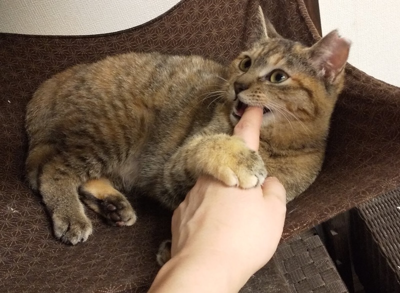 | 里親募集する理由 | 職場のゴミ置き場に子猫がいる、との情報があり見に行くと、大き目の子猫が2匹。 保護するには大きいし、人馴れしていないし、TNRのため捕獲しましたが、便からゴミがワンサカ…。 避妊手術をして元の場所に戻したとしても、餌のとり方も分からずにゴミを食べているようなこの子達は、この冬越せないのでは…と、TNRから保護に変更。 人間を知らないから、最初は怖がっていましたが、一緒に暮らす中で、家猫として暮らす術を身につけました。 2ヶ月間一緒に暮らし、今では家猫生活を満喫するようになりましたが、我が家には既に複数のシニア世代の猫がいます。通院も多く、子猫を十分に可愛がってやることができません。一匹は知り合い経由で里親さんがみつかりました。茶豆を家族として迎えてくださる里親さまを探しています。 |