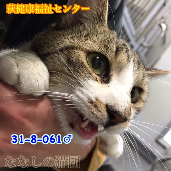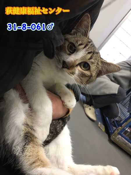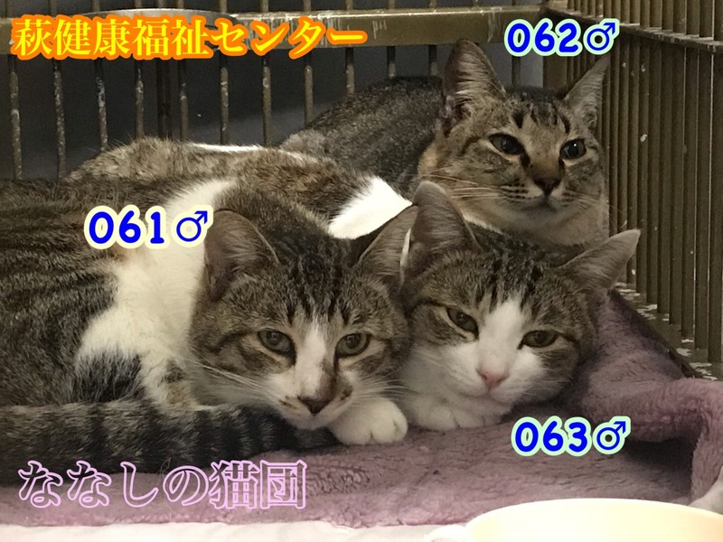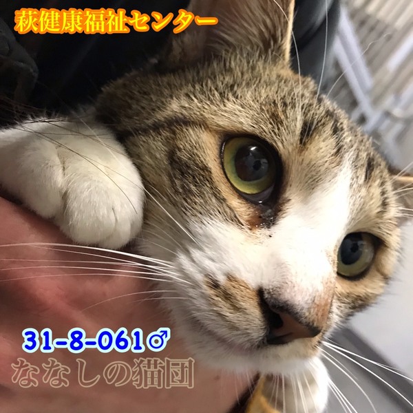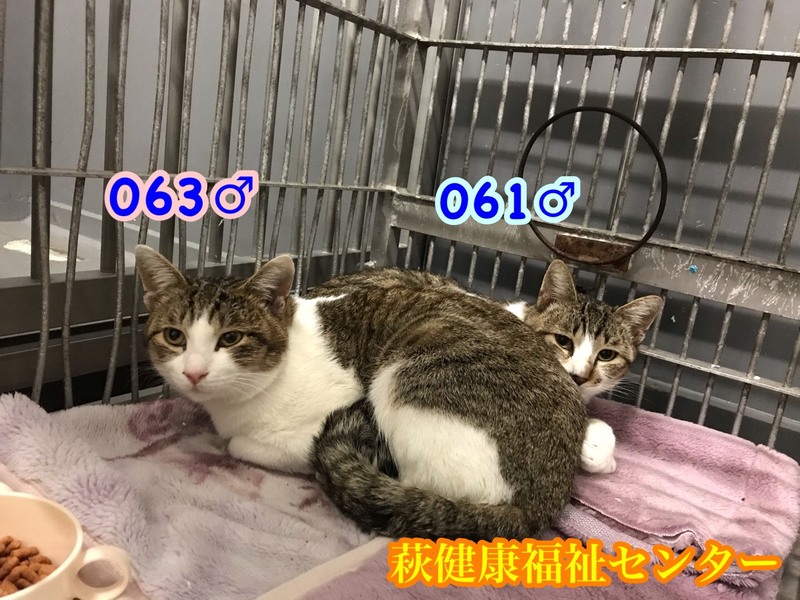| 特徴(性格など) | 管理番号 31-8-061 体格の良い、白キジの男の子でまだ若いですが、大人しい良い子です! 元々飼われていた子なので、人馴れしてますが今は不安そうです、、 兄弟なのか親子なのか、みんな一緒で離れません(TT) この子達の気持ちを思うと、出来れば二匹一緒のお迎えをご検討頂けると嬉しいです。 ※写真の062君だけお迎えが決まりました。。 |
