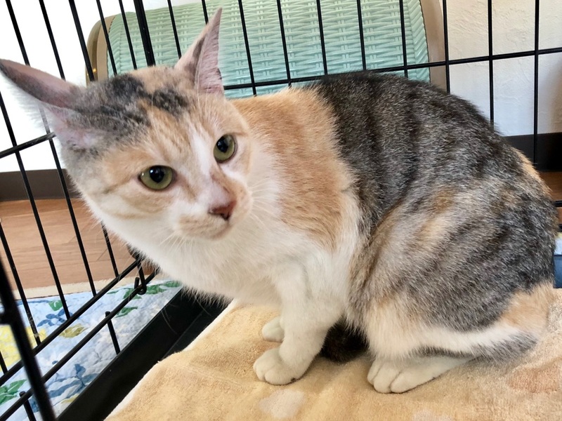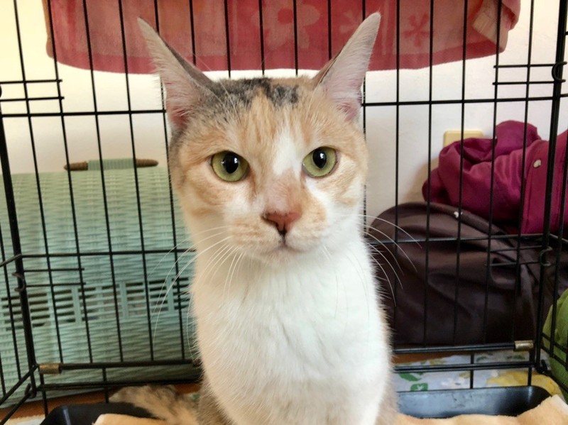 | 特徴(性格など) | よく見ると茶色と黒(グレー)部分がシマシマの不思議な柄のパステル三毛ちゃん。 とても人馴れしていて、誰にでもスリスリしてくれます。 身体は女の子のわりには大きめで、健康体です。 毛並みもきれいで、おもちゃでも遊ぶまだ若猫です。 人は大大大好きですが、猫は嫌いなので 1匹でとびっきり甘やかしてくださる方と相性◎です。 食事:ドライフード トイレ:失敗なし 爪切り:できます エイズ・白血病:陰性 |