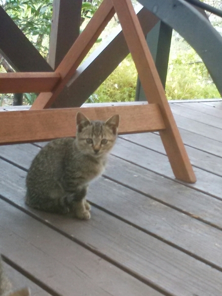 | 特徴(性格など) | キジトラ模様のモコモコしたかわいい女の子です。 よく周りを見ている大人しく賢い子猫です。 ボール遊びや追いかけっこが大好きで一緒に保護した子猫達と元気に育っています。 |