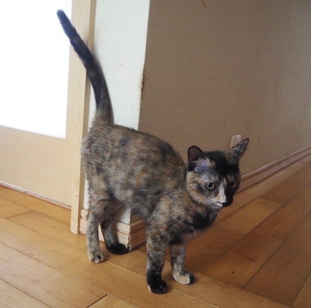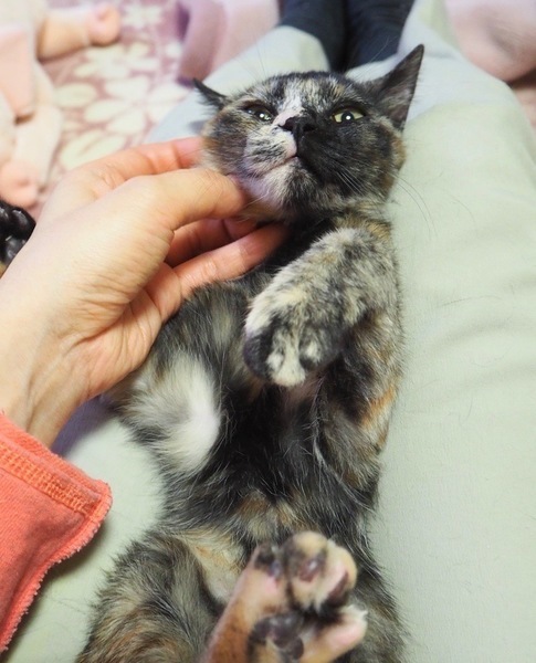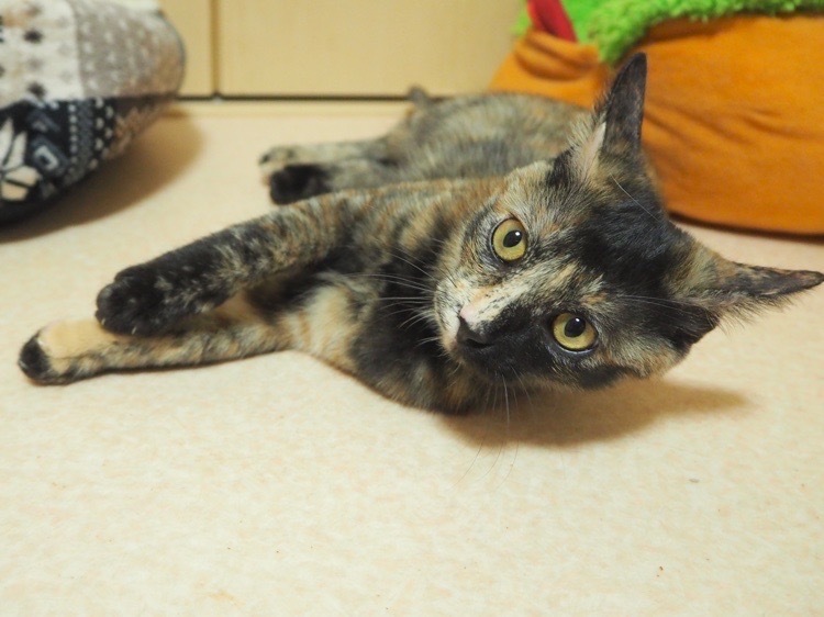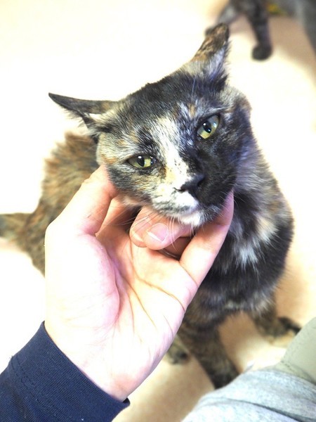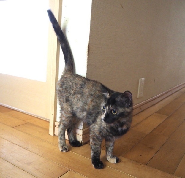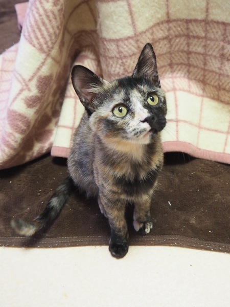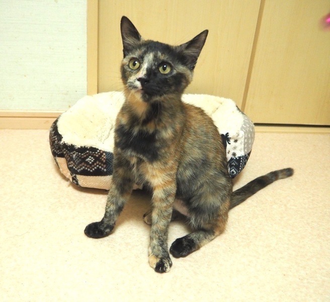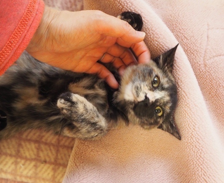 | 特徴(性格など) | 小柄なサビ猫「モロ」ちゃん♡ 好奇心旺盛な甘えっコ♪ 話しかけるとしっかり目を見てくれます♪ 小さな時から人の手で育てられたので、素直な甘えっコです。 現在、ドライフードを置き餌として、栄養補給のため、一日2回程度のパウチを与えています。 <推定誕生日:9月末ごろ> |