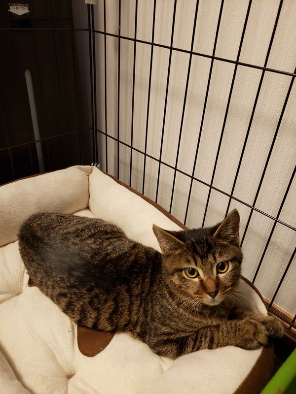 | 特徴(性格など) | キジトラ ちょっと臆病だかエサは真っ先に食べにくる食いしん坊さんです。 | ||