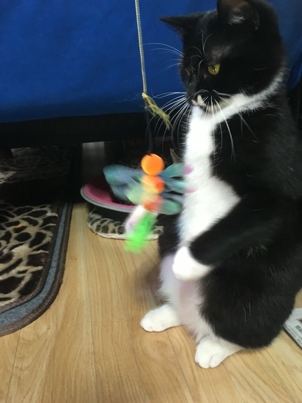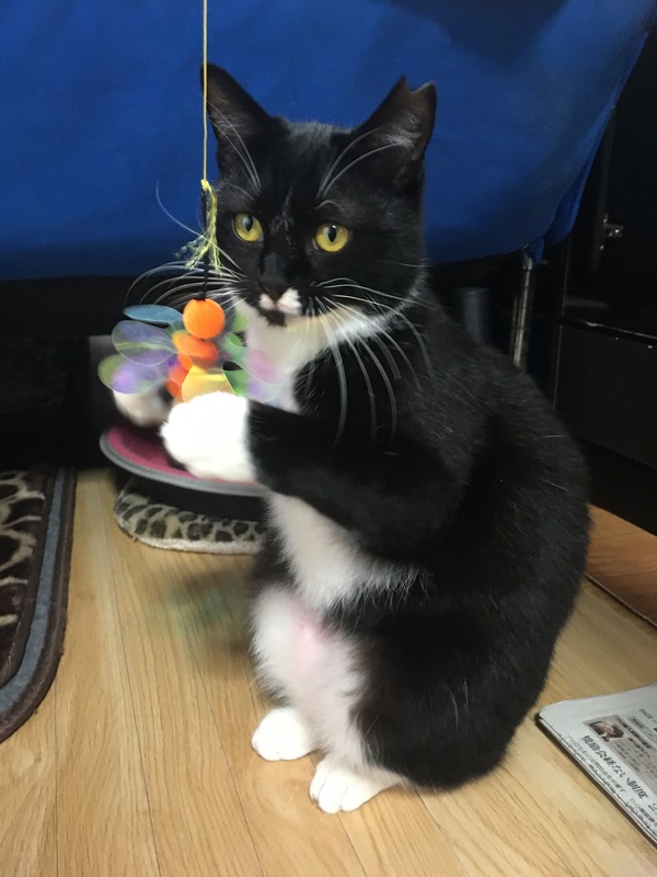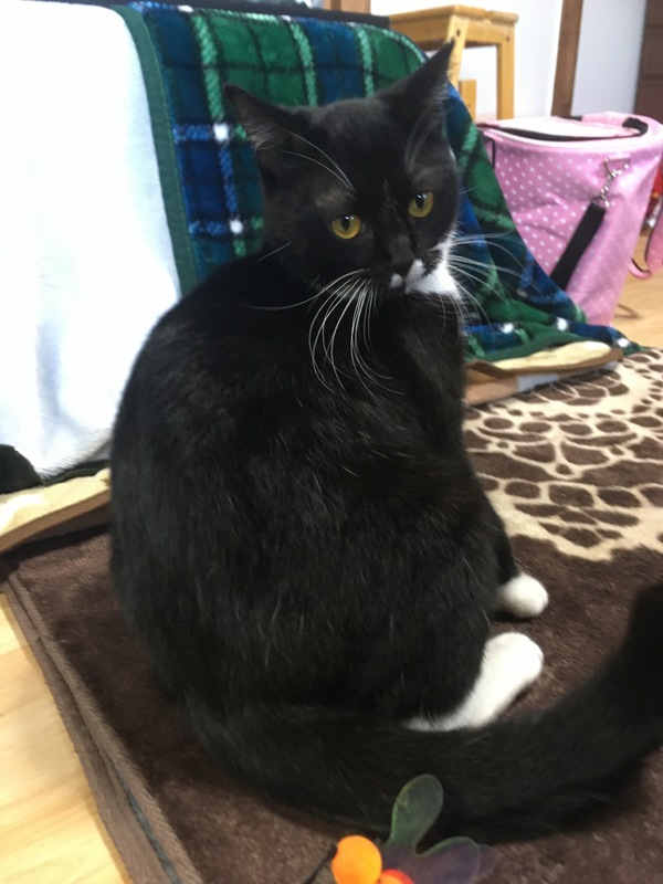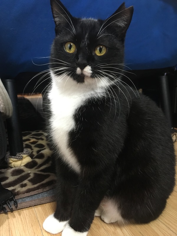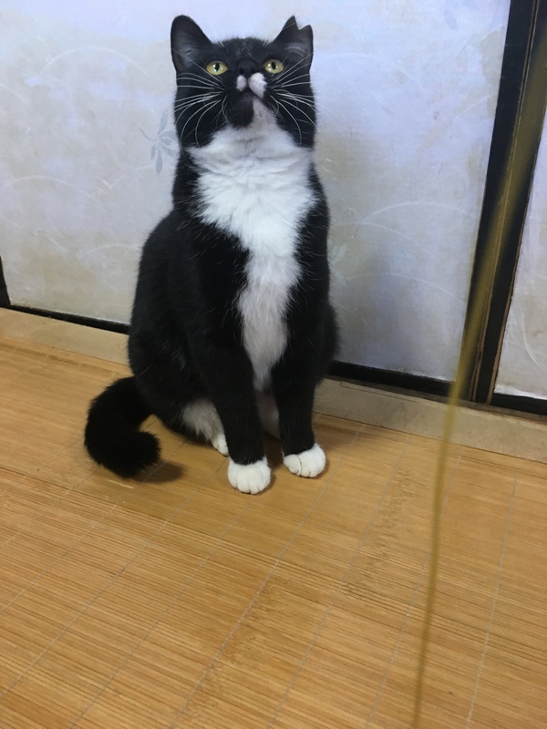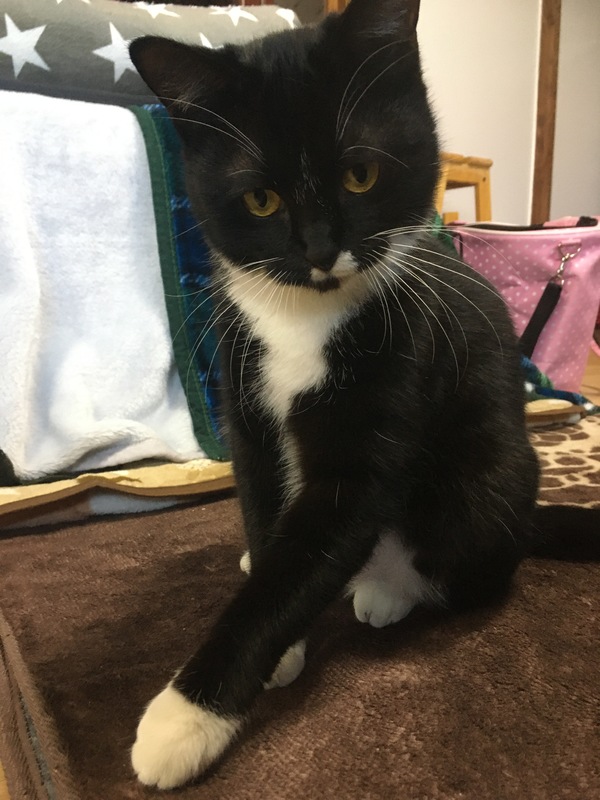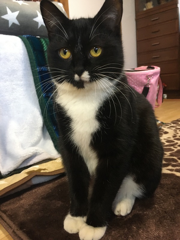 | 特徴(性格など) | 黒白マスクキャットの女の子。 鼻の下に小さな蝶々の模様があります。 黒白のタキシード服を着て、白い手袋をしています。(鼻下の蝶々もヒゲ模様に見えてきそうですが、、、) コロコロしたフォルムに短い足、見た目がかわいいですが、特にフカフカのお腹が気持ちいいです。 性格もとっても良く、寄ってきますし、人懐っこいです。 初めての方にもおすすめです。 |